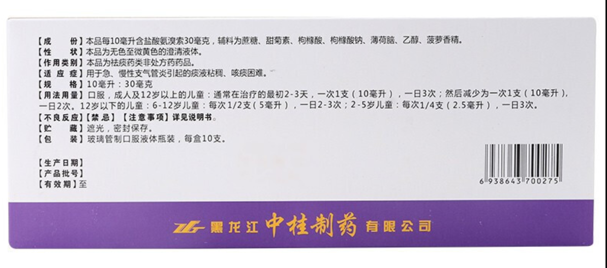 | 主要原料 | 本品每5毫升含盐酸氨溴索15毫克,辅料为蔗糖、甜菊素、柠檬酸、柠檬酸钠、薄荷脑、乙醇、菠萝香精。 |